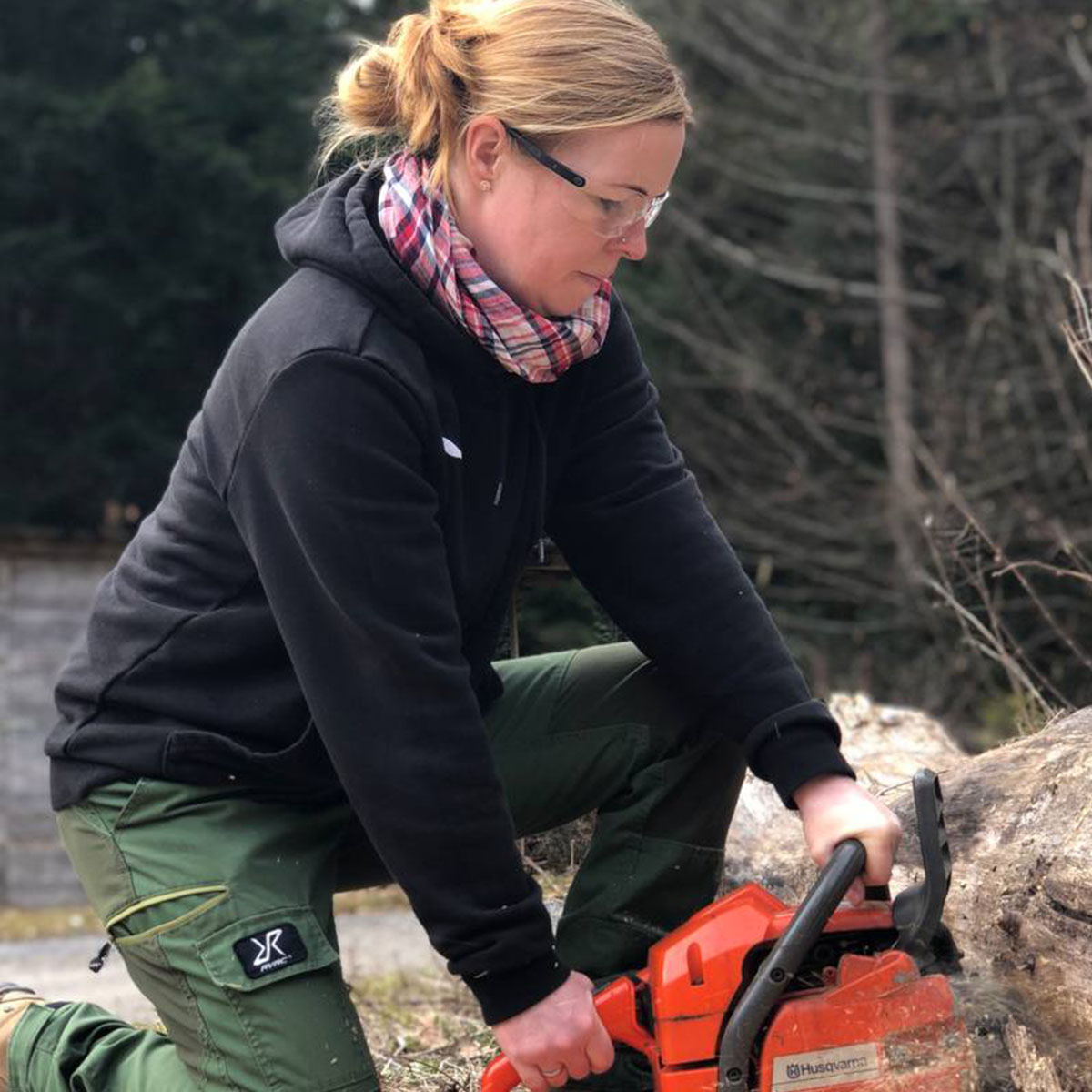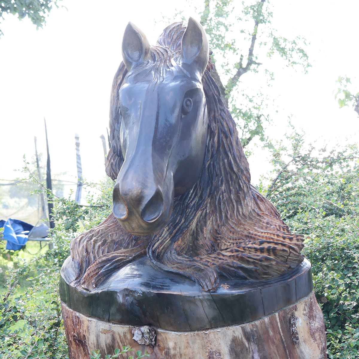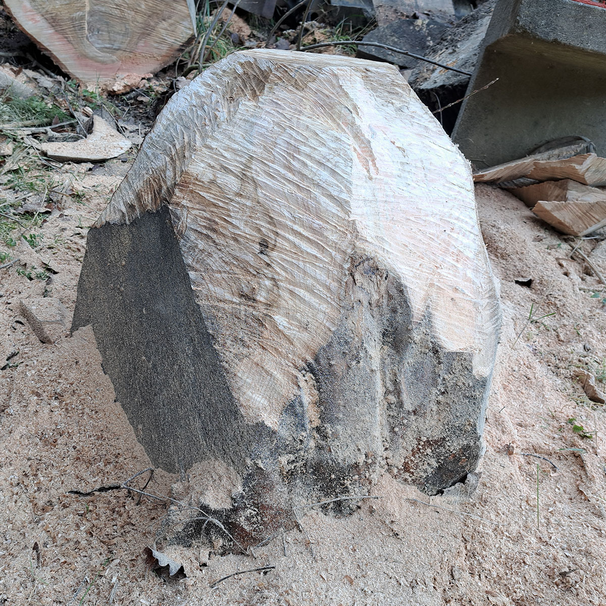 Die Ausbildung zur Goldschmiedin habe ich erfolgreich abgeschlossen. Im Jahr 2014 lehrte mir mein Mann das chainsaw-carving, das Schnitzen mit der Kettensäge. Das Bearbeiten von Holz faszinierte mich sofort!